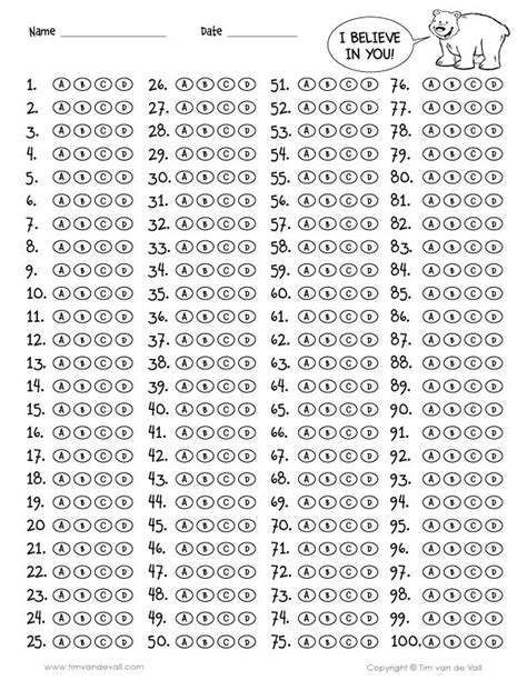 Read Printable 100 Question Bubble Answer Sheet Reader