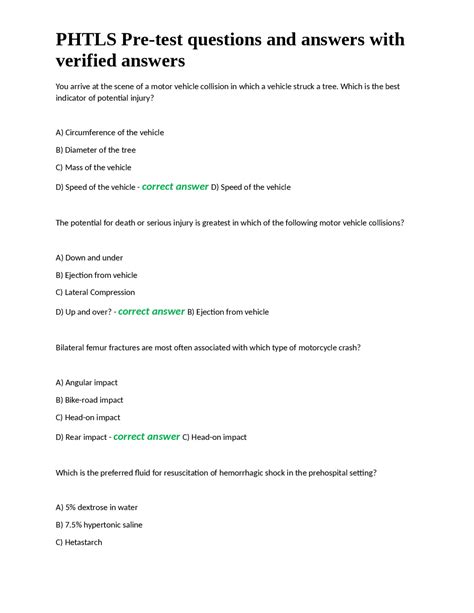 Download Free Answers For Phtls Pre Test Epub